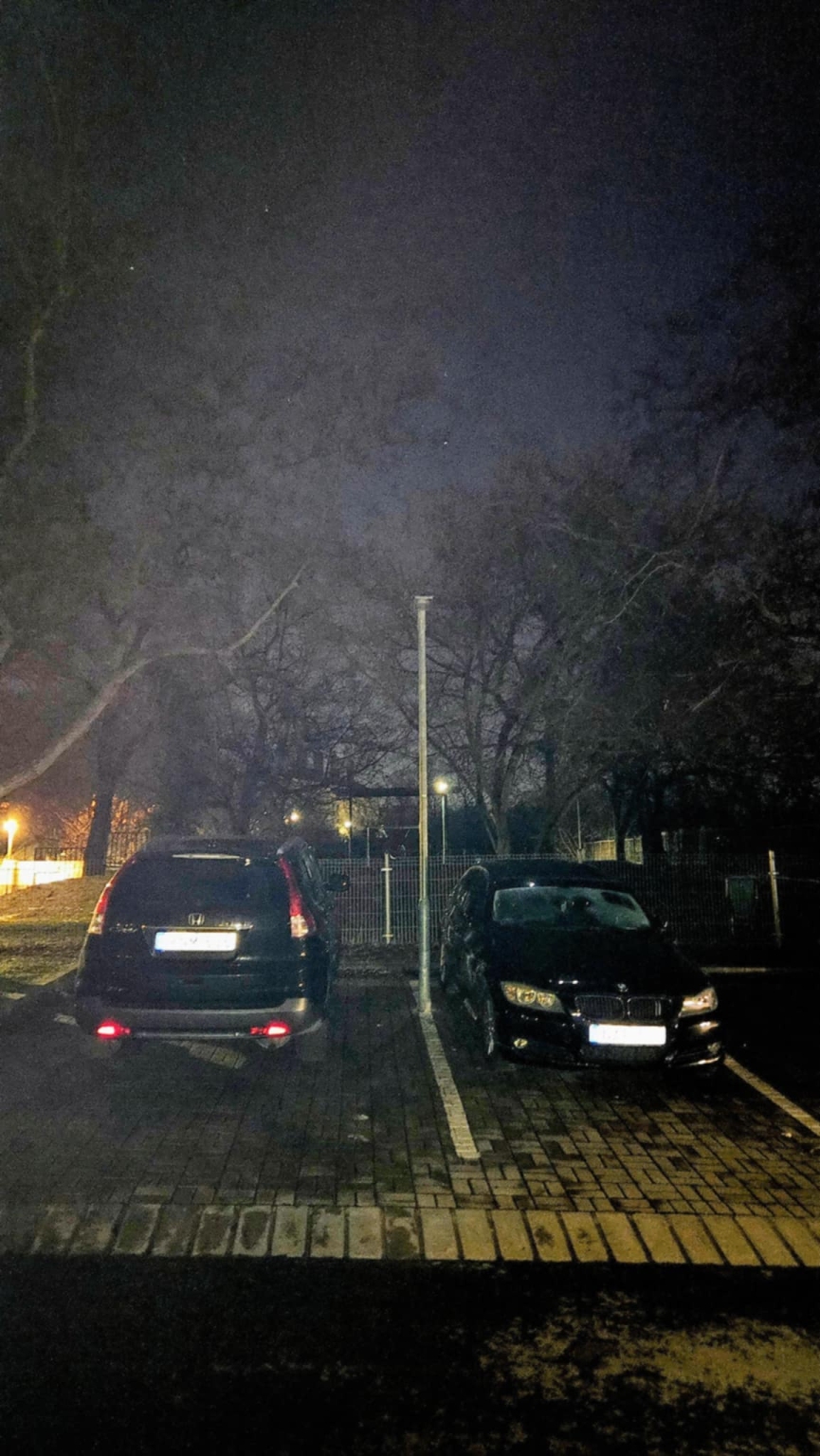 Budapest, X. kerület Rottenbiller Park a KÖSZI melletti futtató előtt a lámpa nem világít, így még sötétebb a környék.