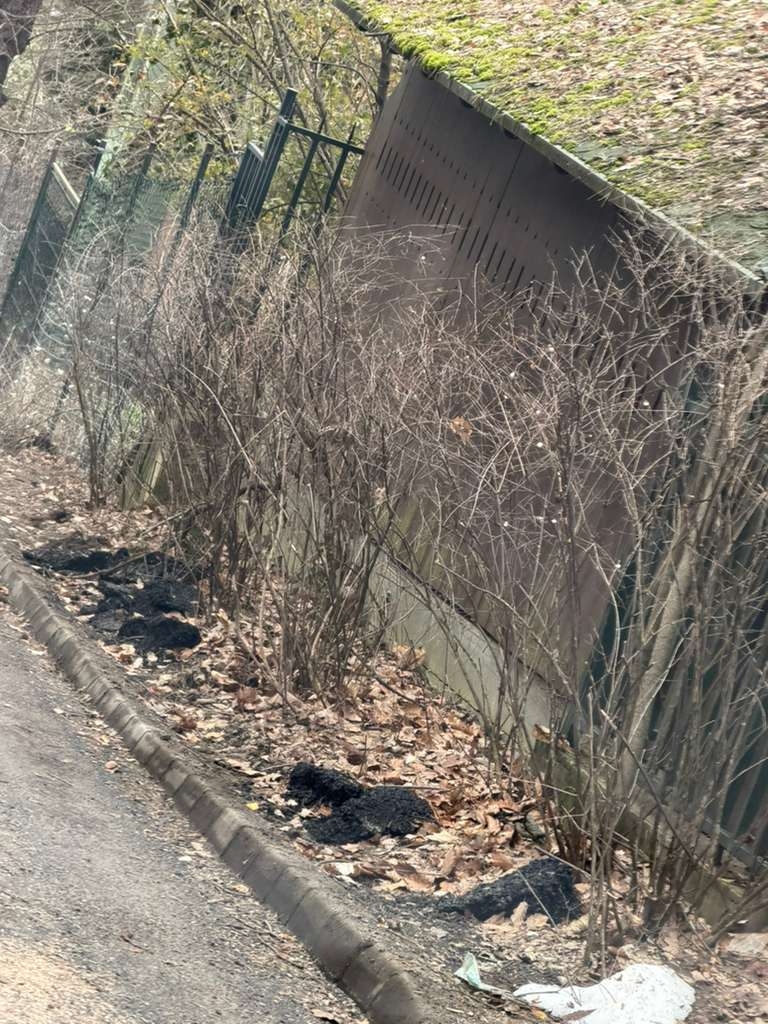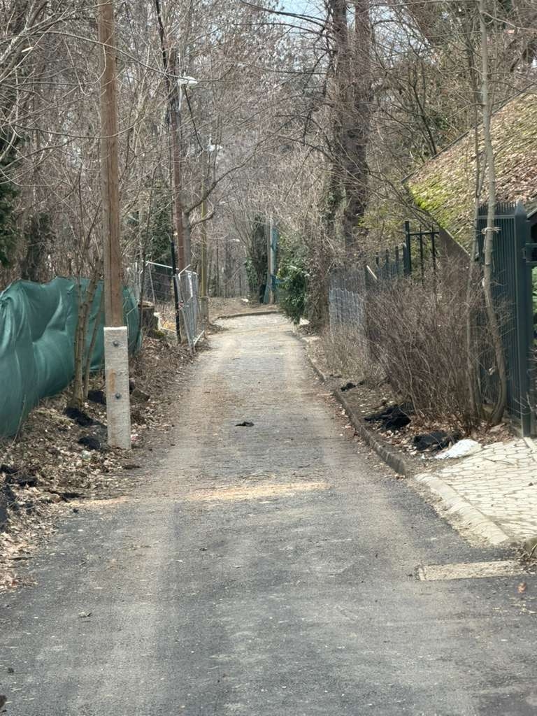 1125 Bp., Mátyás király út - Laura utcai kereszteződés - Építkezés miatt felbontották a Laura utca burkolatát, majd a javításkor a aszfalt hulladékot az ingatlanunk kerítése mellett hagyták!
