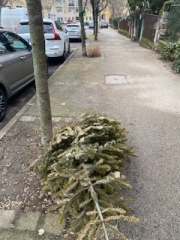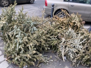 Karácsony után lassan 2 hónappal még mindig az utcán láthatók a kidobásra szánt, elszáradt karácsonyfák.