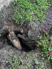 Irtásra már korábban is bejelentette a Közös képviselő. Mai napon ismét jelentette a Fővárosnak a jelenséget. /Lásd mellékelt kép./ Az első bejelentéstől a lyukak csak nőnek, beomolhat a képen látható csatornafedél és a támfal kövezete is elkezdett kibukni.