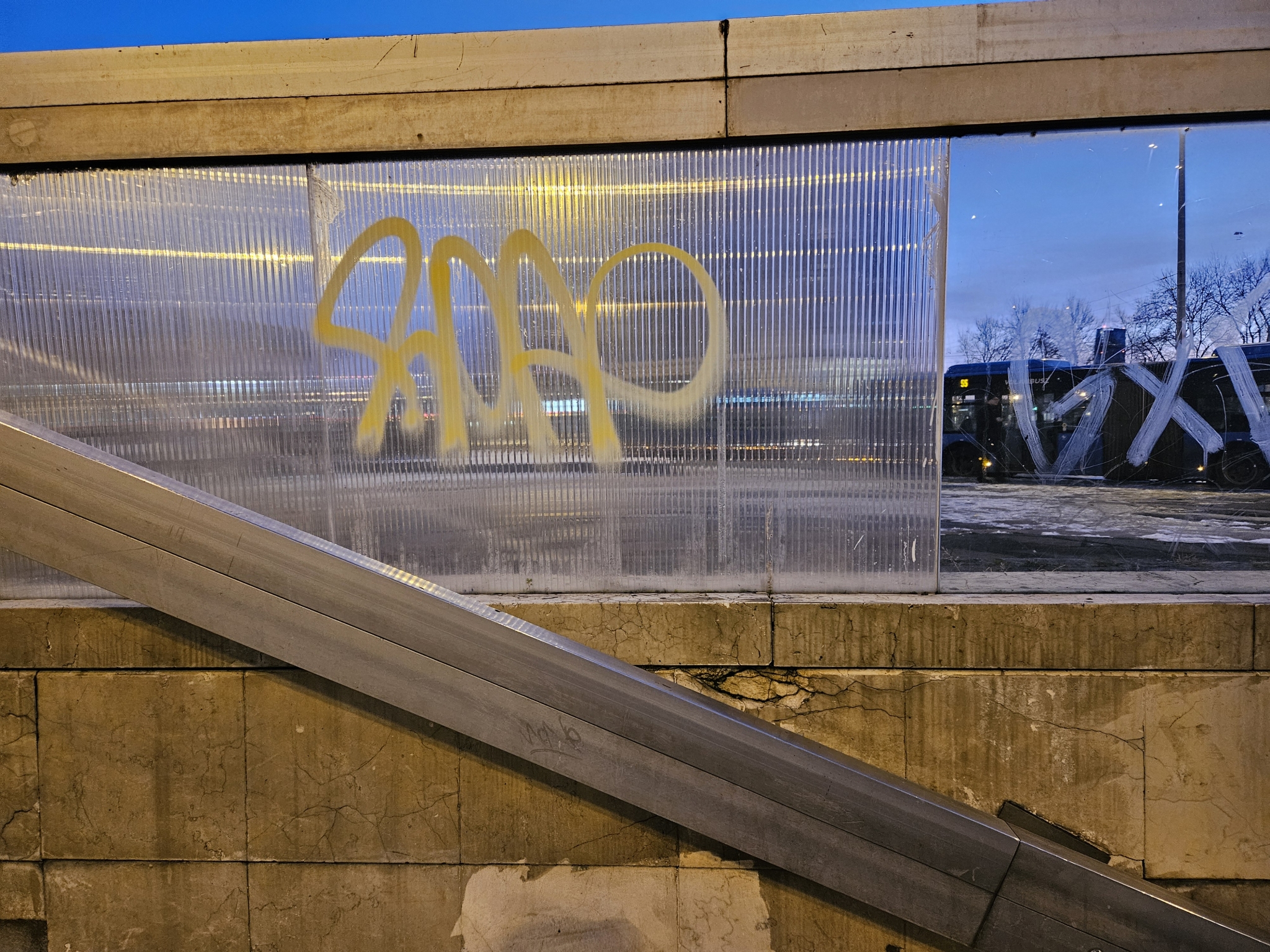 Graffiti a Boráros tér aluljáró a G lépcsőjén