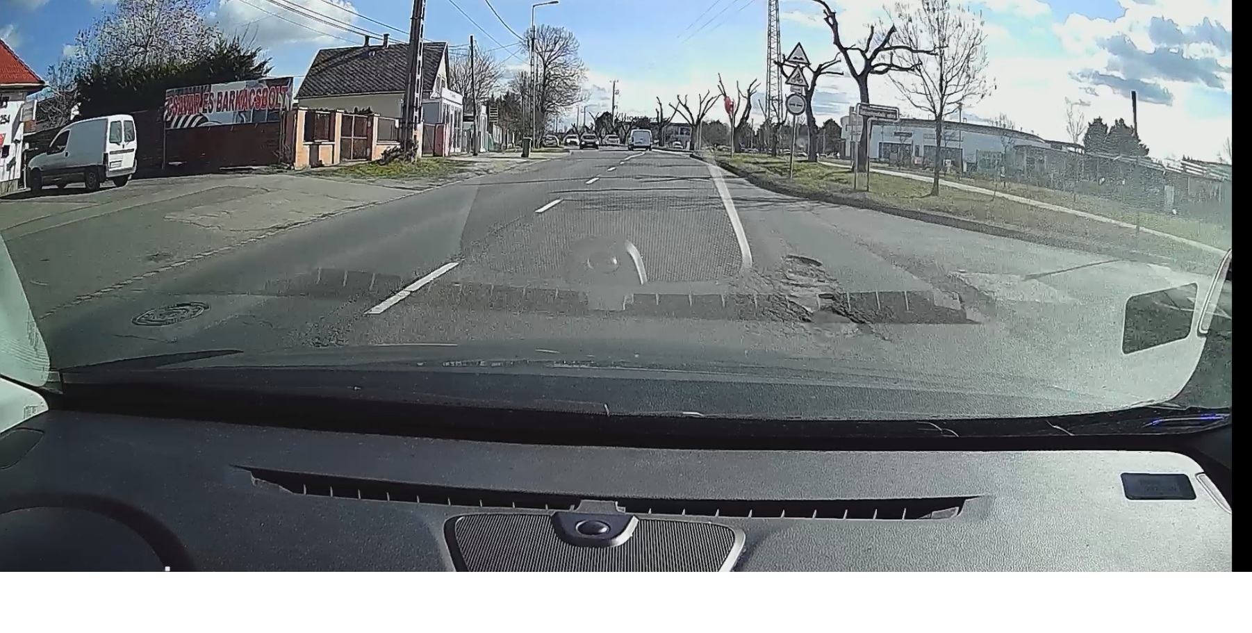 Kátyú az úton. Pesti út home centernél Shell kútról kihajtónál.