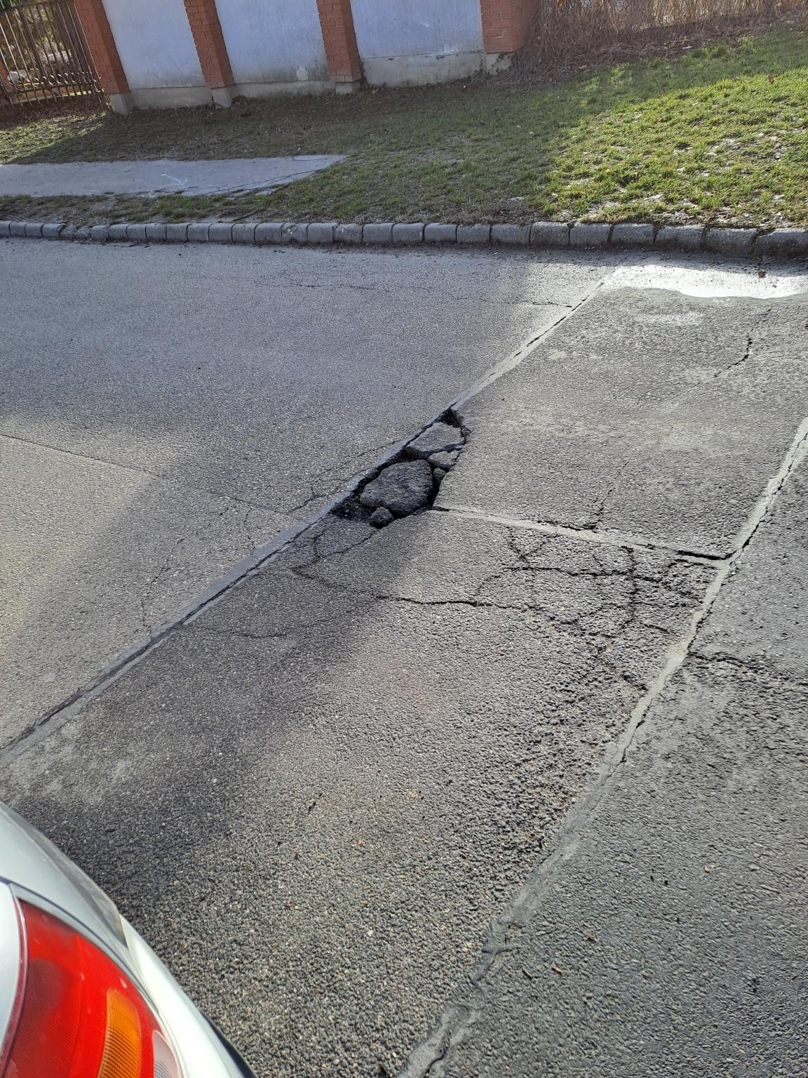 Az 1124 Bp. Bürök utca 67/a-val szemben felszakadt 2 nagy aszfalt darab.