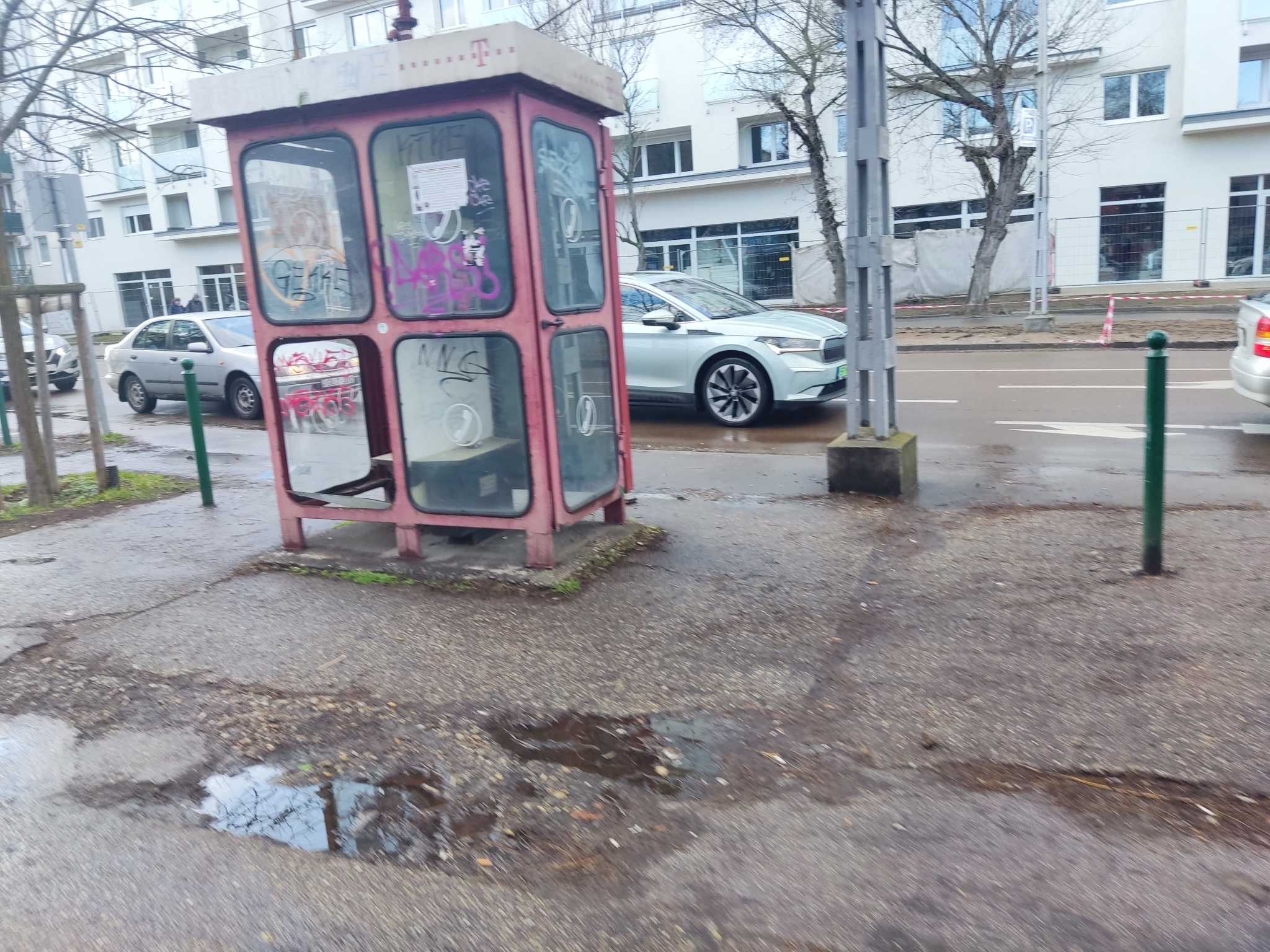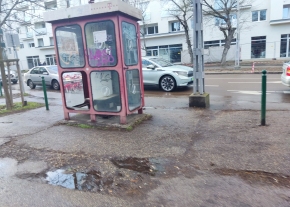 Telefonfülke üvege kiszedett? állapotban. Most (még) nincs összetörve, vissza lehetne talán helyezni.