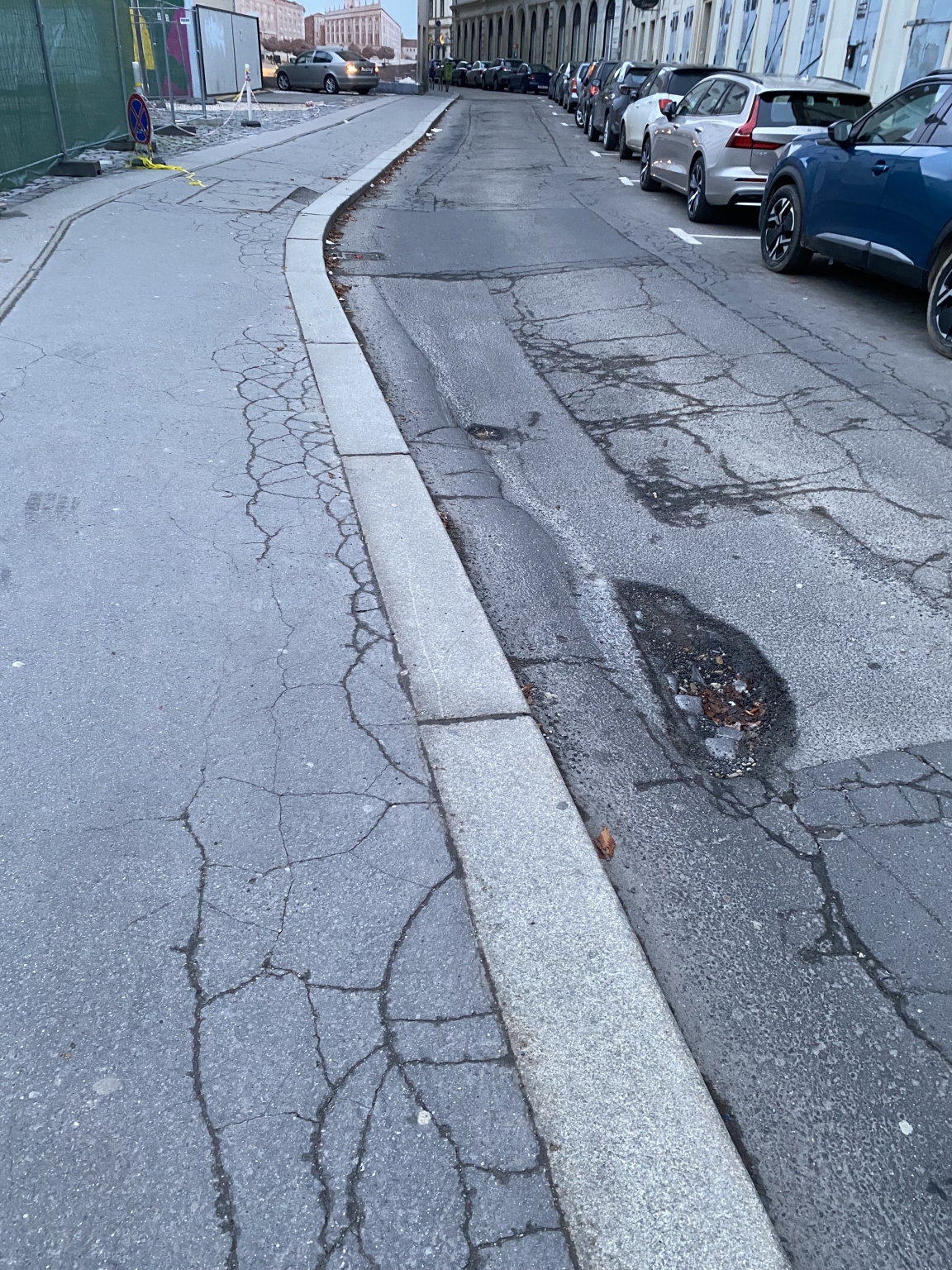 Az utcában jelentős mélységű kátyú, illetve úthiba található a megadott helyen.