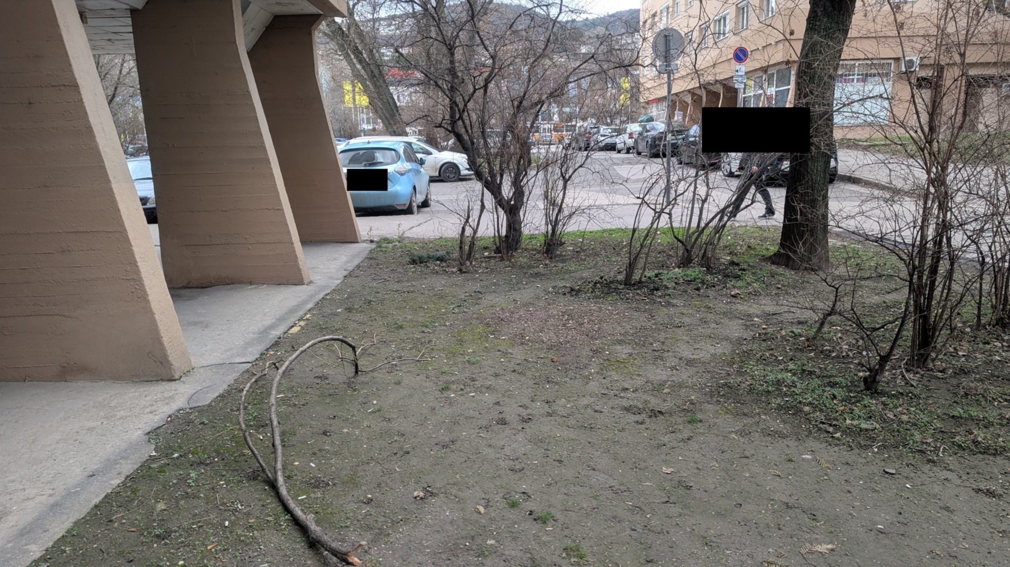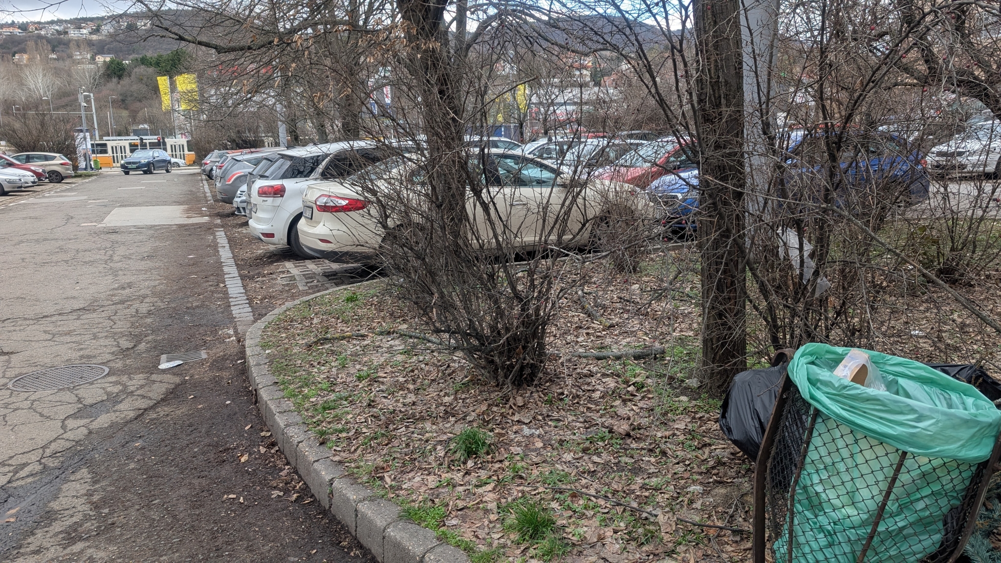 Letört faágak a parkolóban