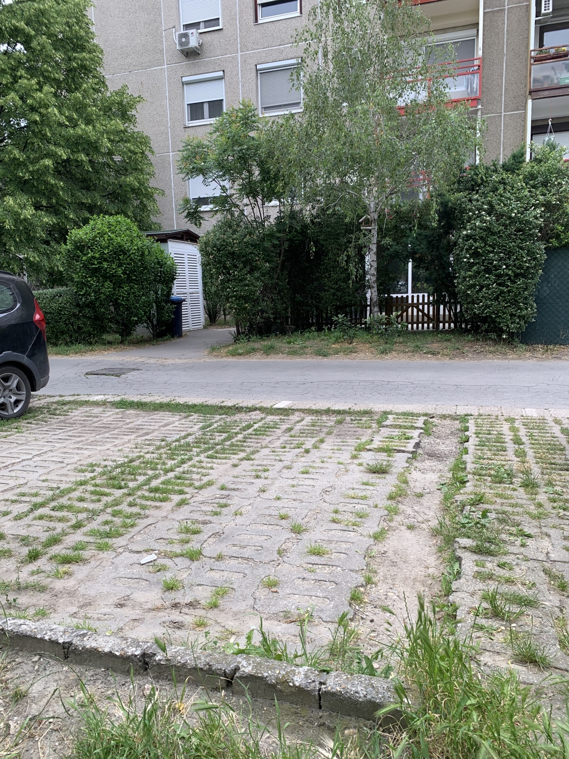 A 1031 Vitorla utca 17. előtt, az egyik gépkocsi parkoló helyen nagyon mély és éles a nyomvályú, ami az autógumi károsodását okozhatja.