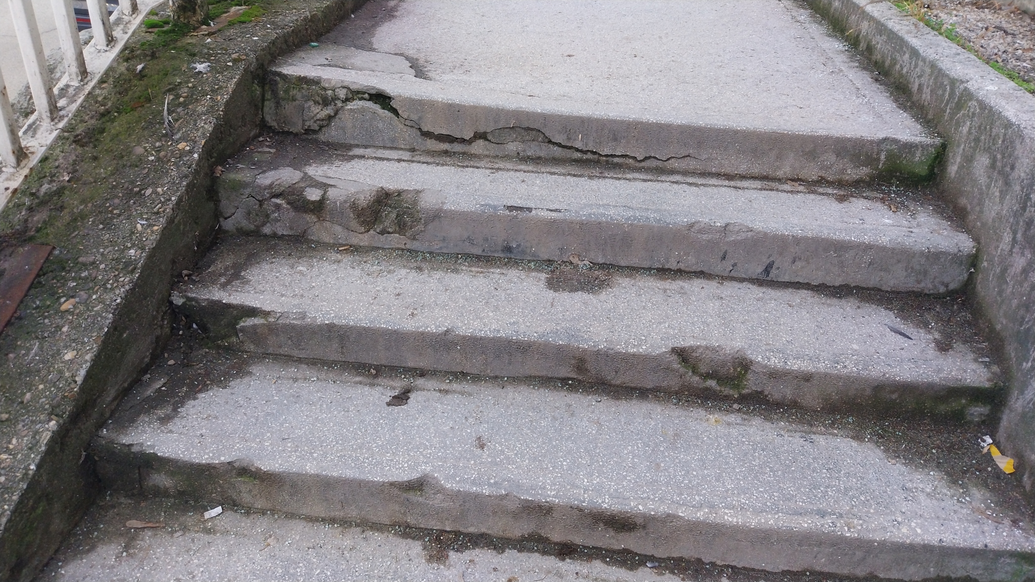A Déli pályaudvar tövében csorba, sérült, hiányos lépcsőfokok teszik kockázatossá a közlekedést.