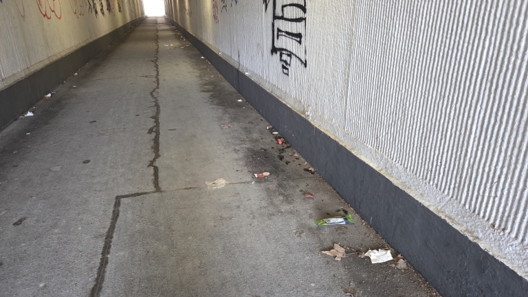 Fekáliás, üvegtörmelékes aluljáró