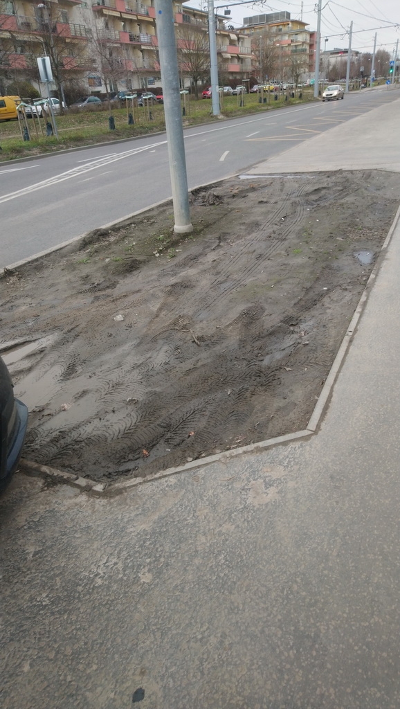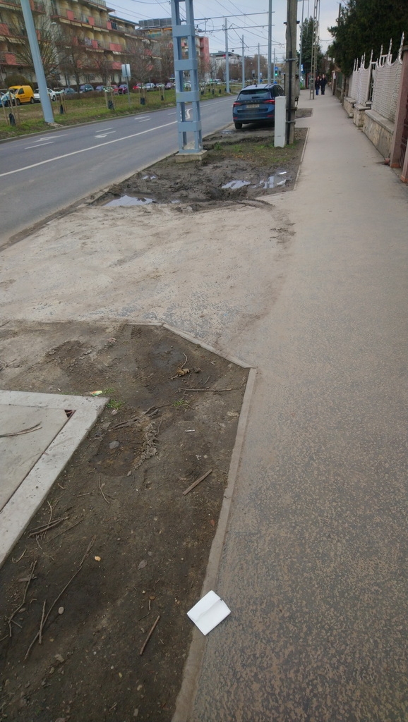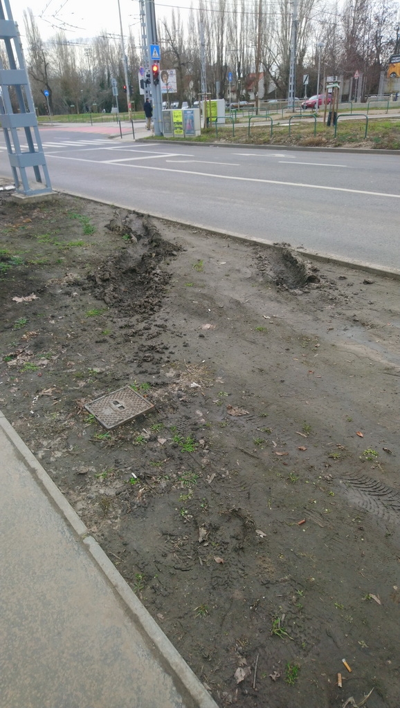 A Szugló u, - Vezér út sarkát tavaly kora tavasszal felújították, kis mértékben átalakították. Van egy szakasz a járda és az úttest közt, amit viszont elhanyagoltak; a felújíátsok során feltúrtak, de nem állítottak helyre. A közelmúlt havas-esős időszakában a talaj átázott, de néhány autó odaállt; és a kihajtás közben tengelyig sülyedtek a sárban.