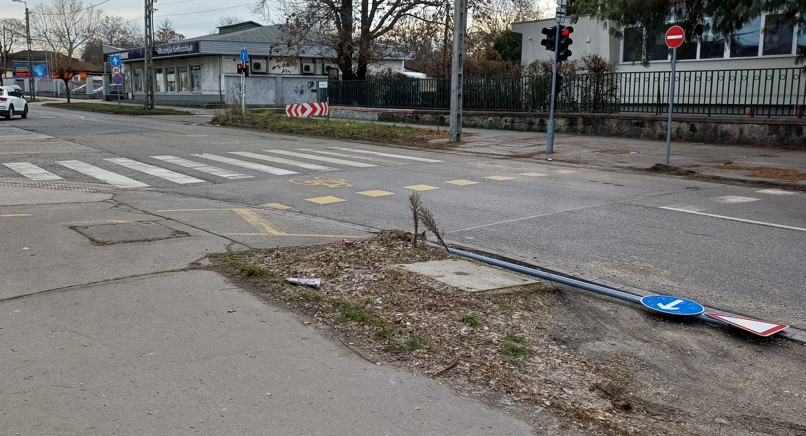 A Teller Ede és Posztógyár utca sarkán az egyik táblát kidöntötték.