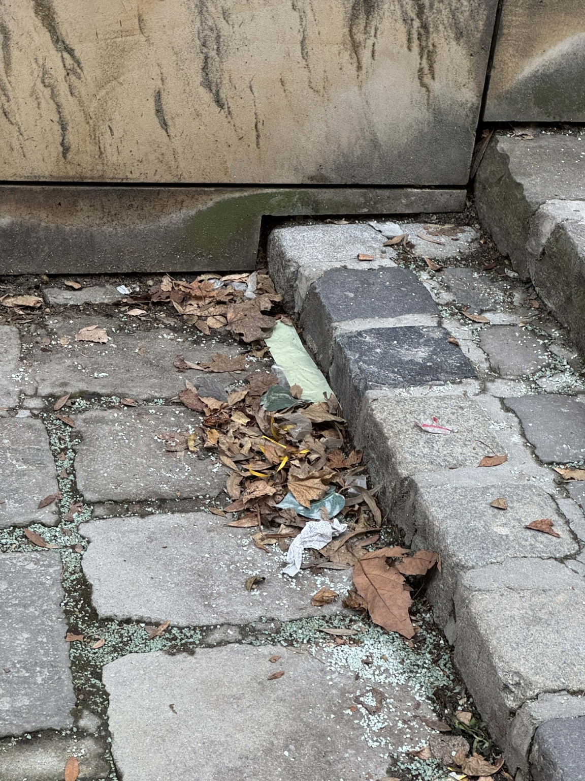Üvegszilánk, emberi ürülék, szemét az utcán