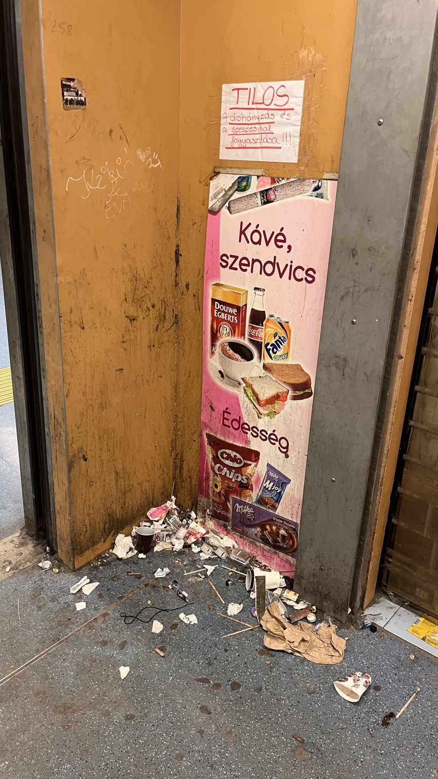 Kökin, a dohánybolt beugrójában állandóan szeméthegyek vannak, brutálisan koszos ez a terület. Kérem a terület gyakoribb takarítását!