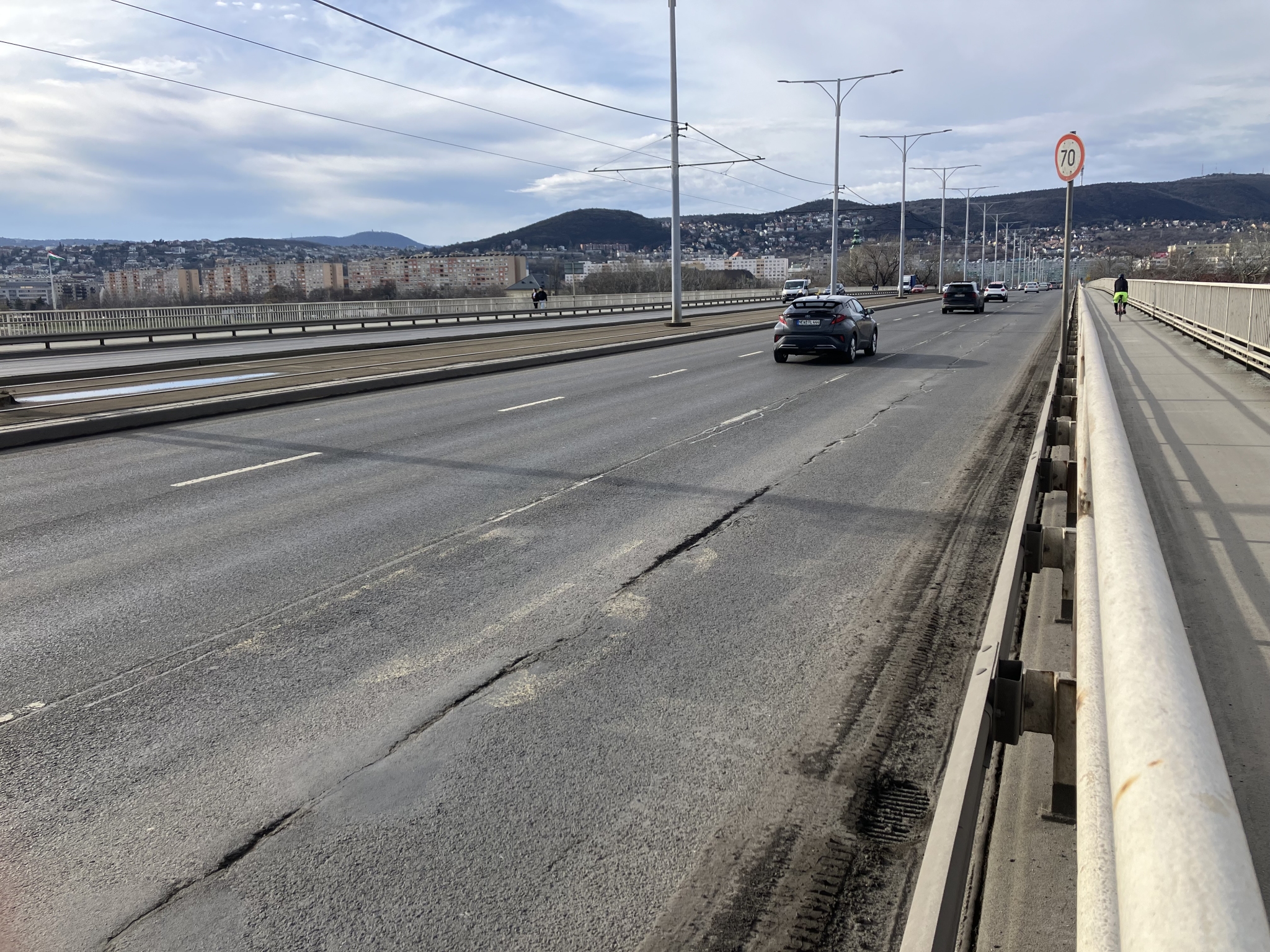 Az ideiglenes buszsáv jelzése végig lekopott az Árpád hídon. Valamint a Szentlélek térnél és a Flórián térnél is eltűntek a sárga csíkok a hídról érkezve.