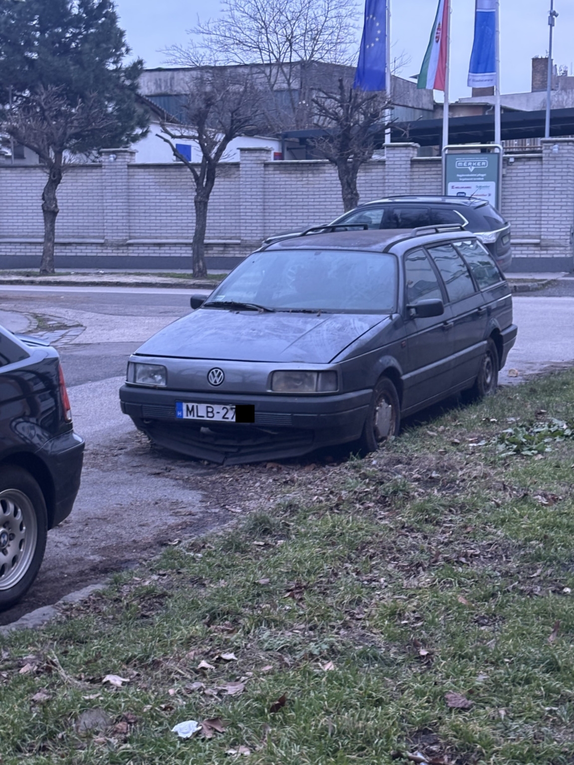A 14. Kerületben a Szatmár utca 33. Szám alatt évek óta áll egy autó aminek már a kereke is leeresztett, illetve hullik szét szép lassan.