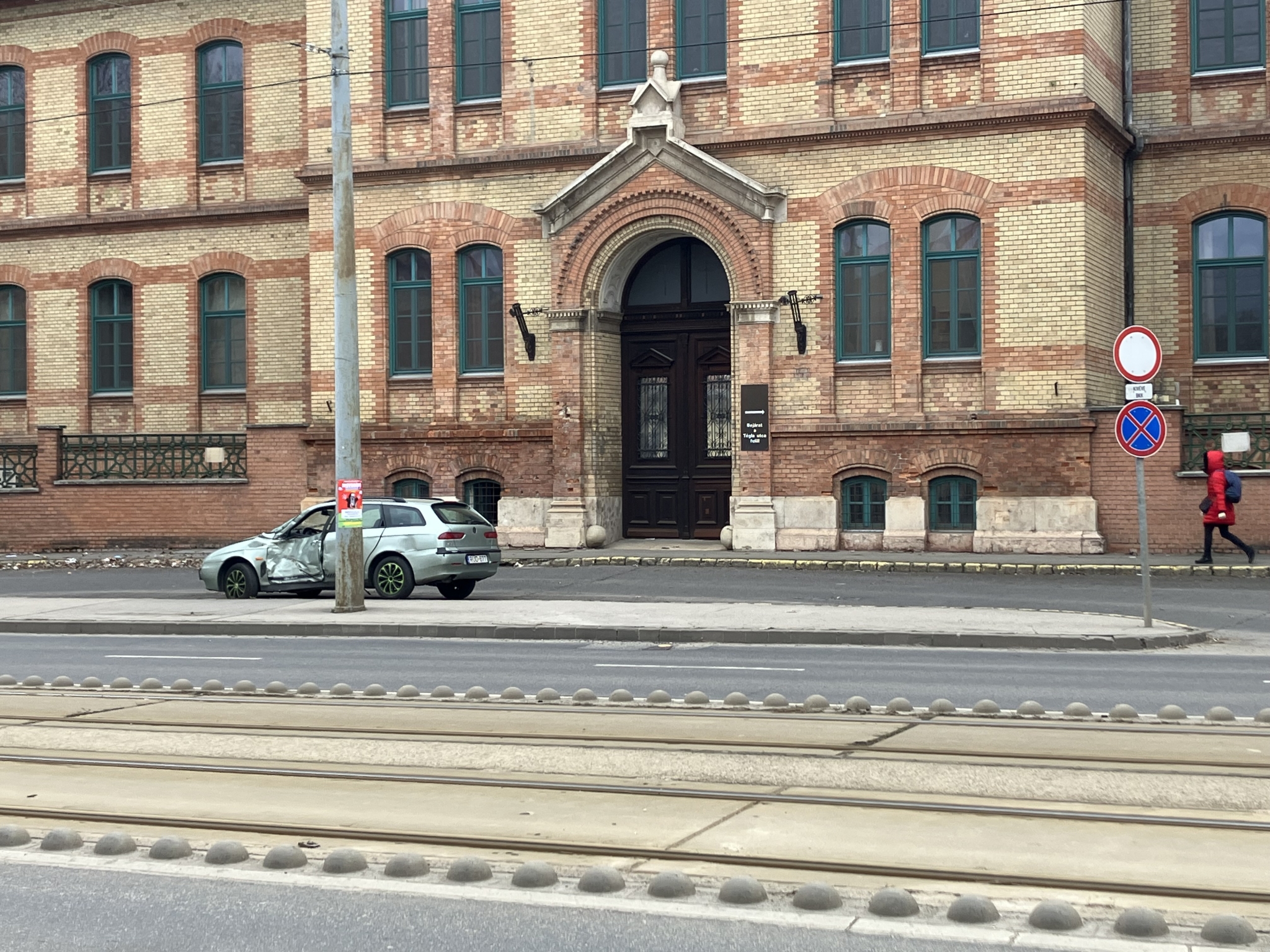 Lassan két hónapja áll a megállni tilos tábla hatálya alatt ez a korábban a villamos elé kanyarodó Alfa.