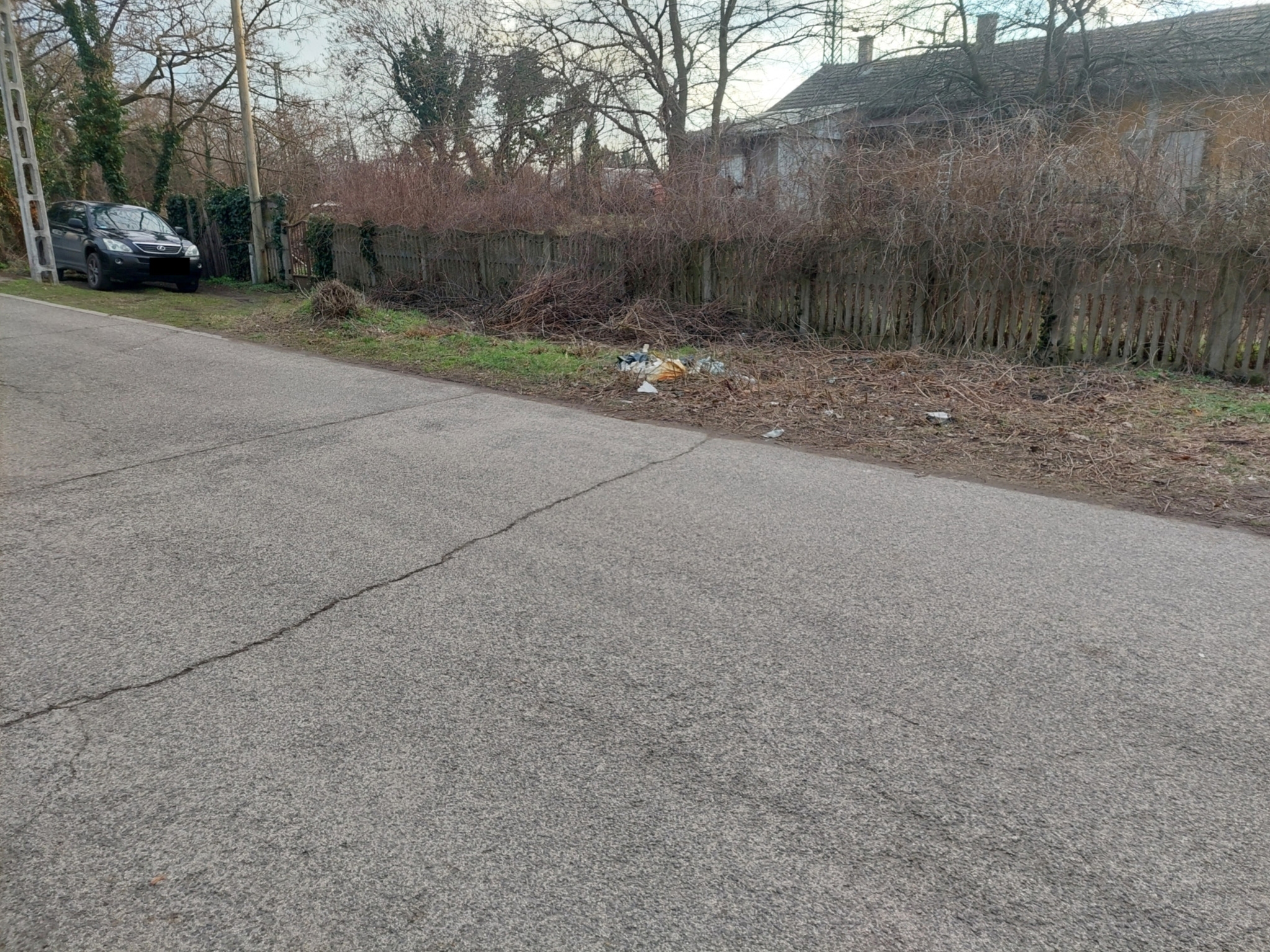 A XIV. kerületi Szederkèny utcában a jelölt helyen az út szélén lerakott szemét található.