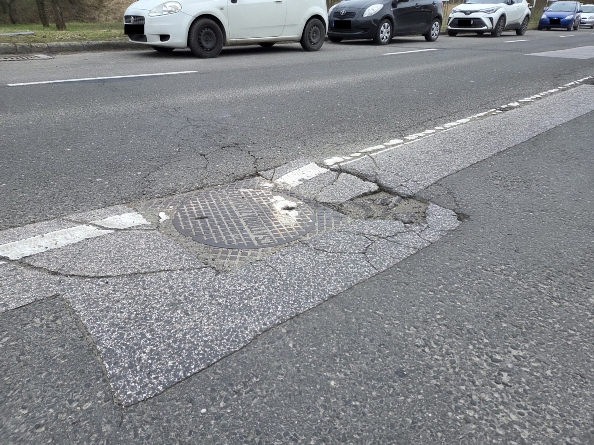 Megrogyott csatornafedelet szeretnék jelenteni a Megyeri út 192 előtt, a belső sávban az Óceánárok út felé.