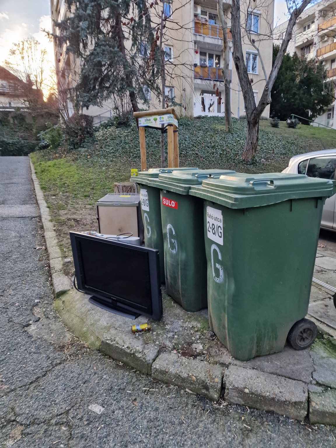A Rahó utca 2-8/G kommunális hulladékgyűjtőihez elektronikai hulladékokat helyeztek ki.
