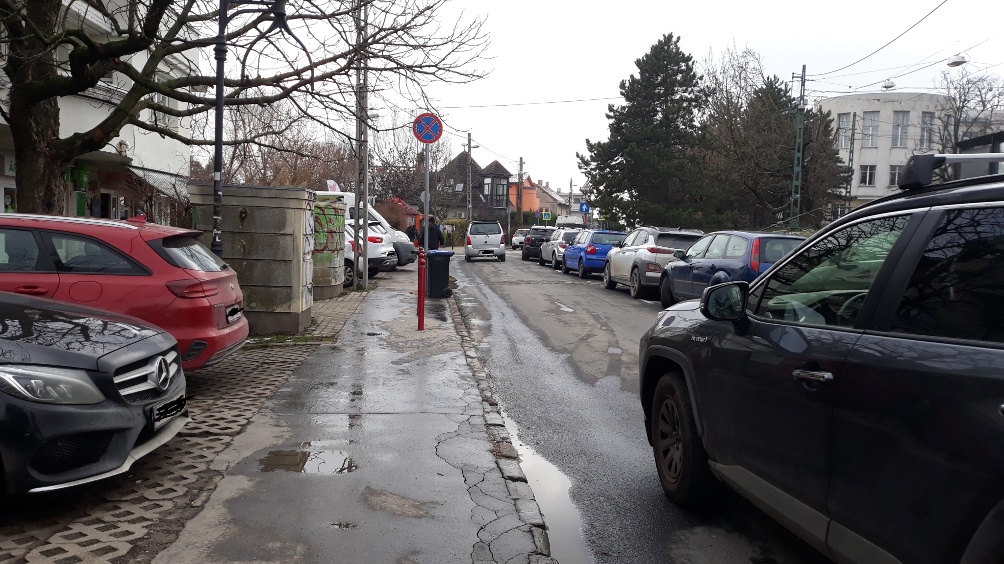 A Tulipános játszótér környékét, ami Lakó-pihenő övezetben van, rendszeres a nem ott lakók hétköznaponként P+R parkolónak használják. Jól látszik a képeken, hogy a hétvégi állapot szerint nagyjából üresek az utcák (ennyi az ott lakók szabályosan várakozó járműve), ami hétfőre megtelik autókkal. A Németvölgyi út felől behajtók a játszótér körül szoktak keringeni parkolóhelyet keresve.