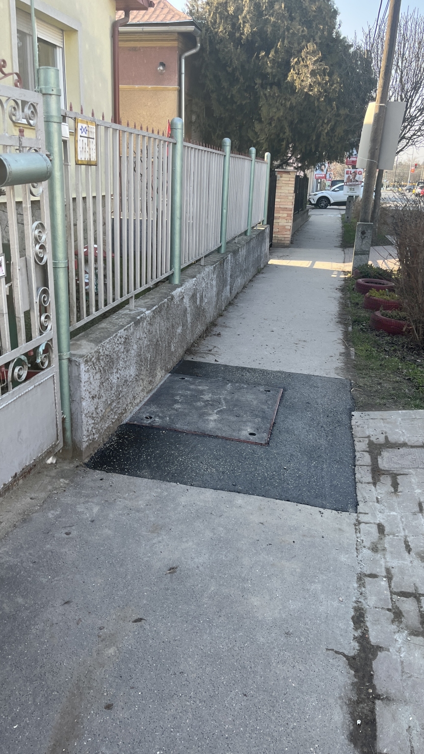 Kérem, a Vidámvásár utca páratlan oldalán, a megjelölt helyen, szíveskedjenek cserélni a megsüllyedt, rossz állapotú fedlapot, amelyben megáll a víz. Köszönöm!