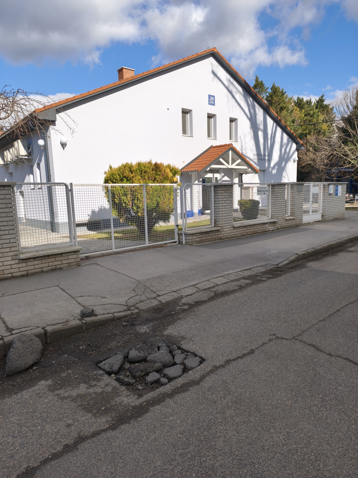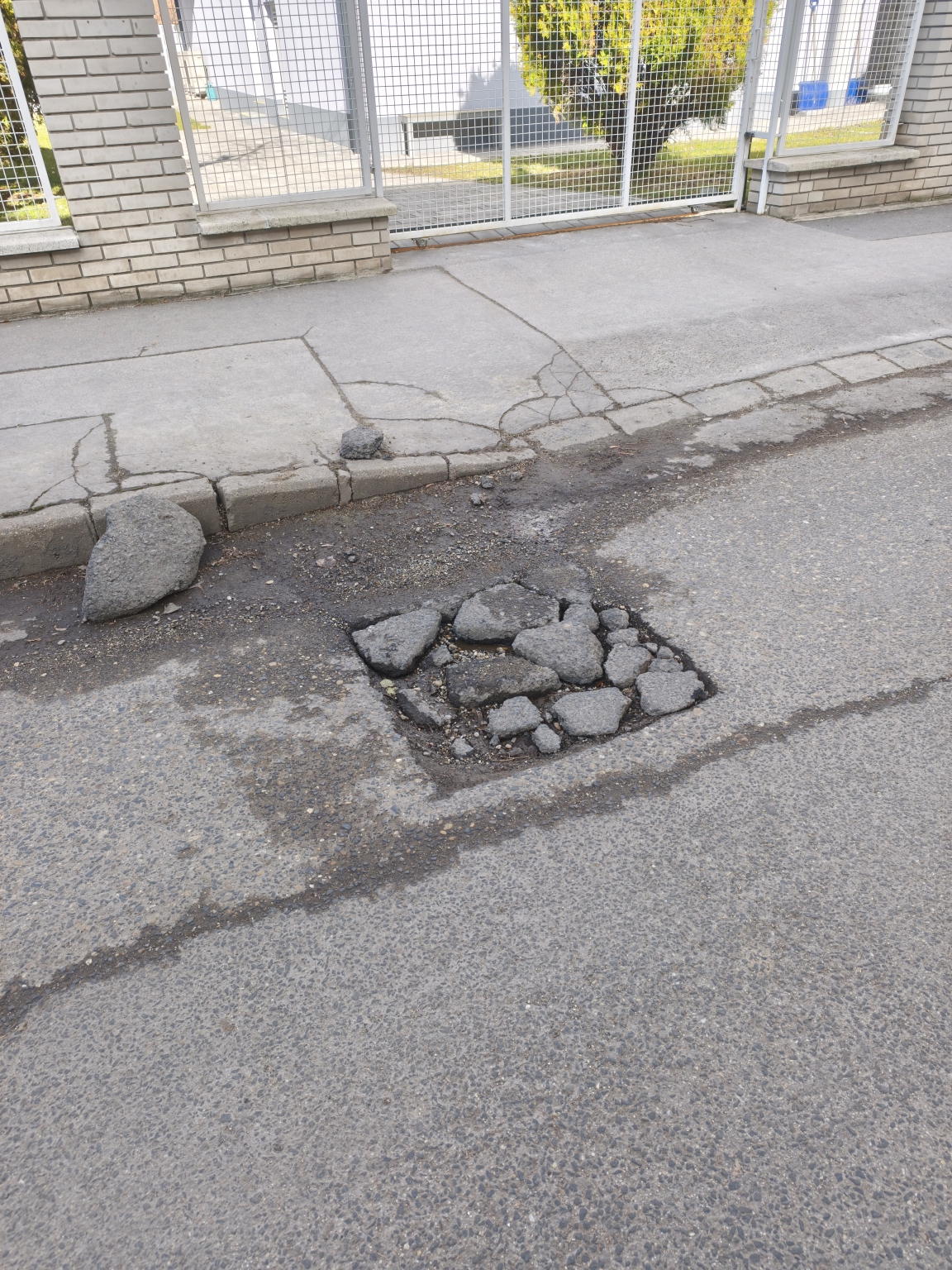 A XI. kerületi Kalotaszeg utca 24 előtt egy óriási kátyú veszélyezteti az autók, rolleresek és biciklisek épségét