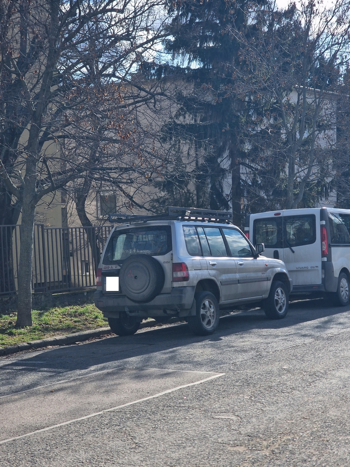 A 1118 Budapest, Bakony utca 18. előtt várakozik egy 2001-es szürke MITSUBISHI PAJERO PININ H60W, a műszakija 2026.02.17-ig volt érvényes.