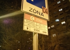 „Szíves tájékoztatásul közöljük, hogy a fizető parkolási övezettel kapcsolatos jelzőtáblák karbantartása, üzemeltetése, kihelyezése a parkolót üzemeltető cég feladata.”