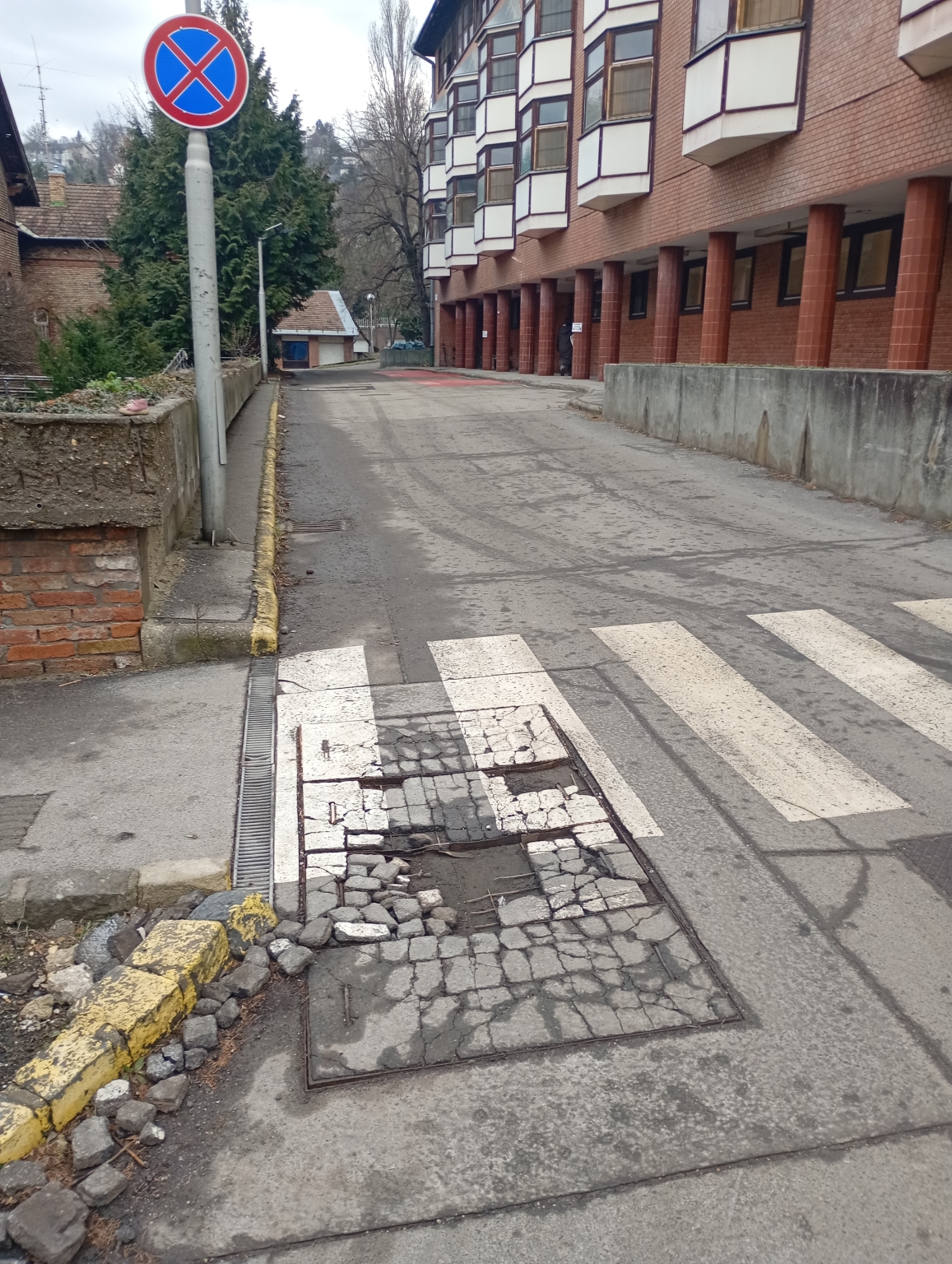 Nem tudom, mennyire küldhető be. valószínűleg a Szent János kórház illetékességi körébe tartozik, de azért egy próbát megér: a képen látható két aknafedelet kéne kicserélni. A Szent János kórház Fül-orr-gégészete előtt található.