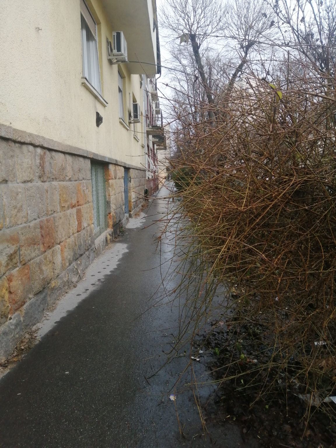 A Budapest III. kerület, Zápor-Kenyeres utca sarkán a járdára rálógnak a bokrok ágai, amiket vissza kellene metszeni. A bejelentéshez csatoltam pár képet a bokorról és a járdára rálógó ágakról.