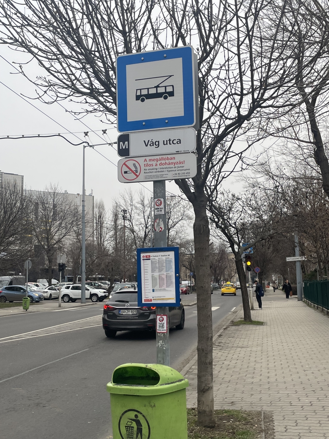 A Vág utca trolimegállóban, a szélfogó mögött egy kis cinke teteme van. A szomszéd ovi gyerekei vették észre.