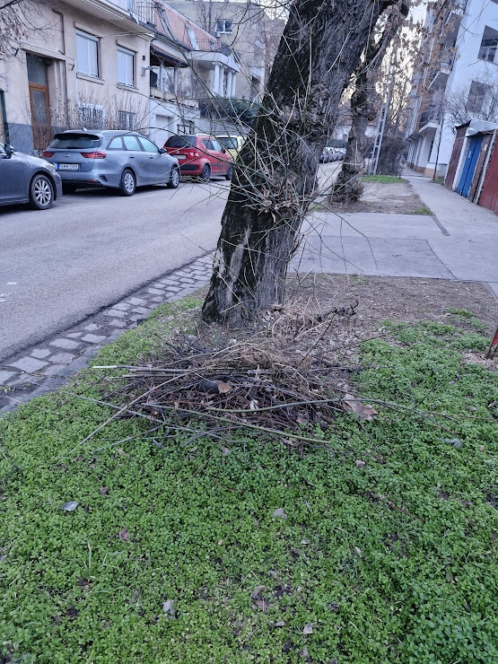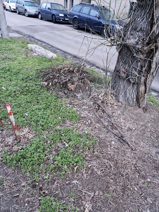 Faágak, nyesedékek a zöldterületen. Kérjük a terület rendezését, a nyesedék elszállítását.