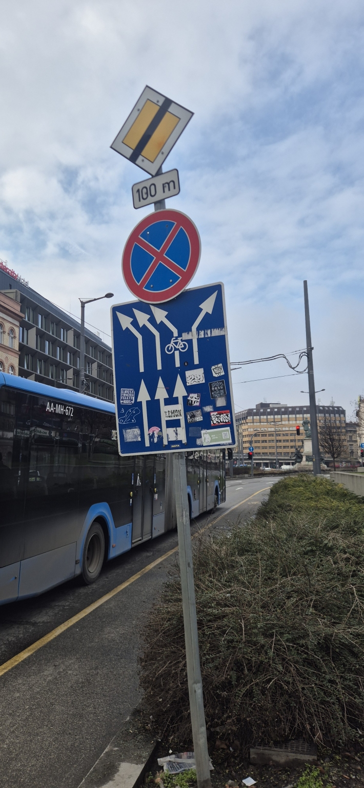 Kérem szépen az illetékeseket hogy legyenek szívesek eltávolítani a matricákat a tábláról. Az épített környezet biztonságosabbá tételét célzó intézkedésüket köszönöm.