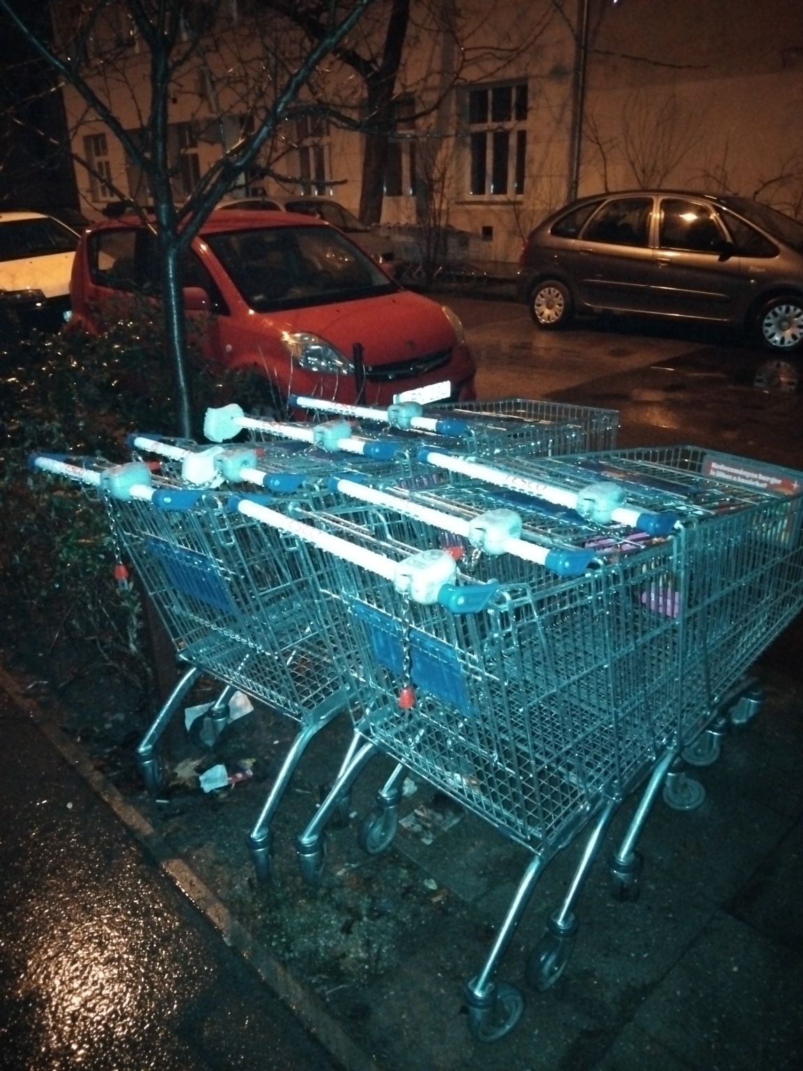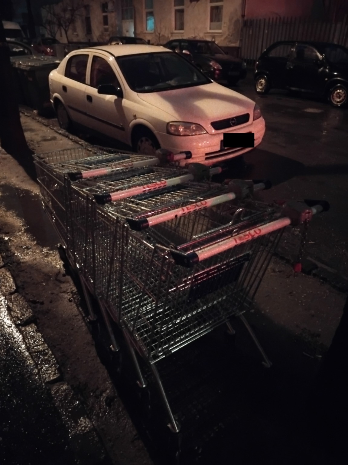 Feltételezhetően a szomszédos Pillangó utcai Tesco áruház kocsijait tologatják el egyesek a Várna utcába.