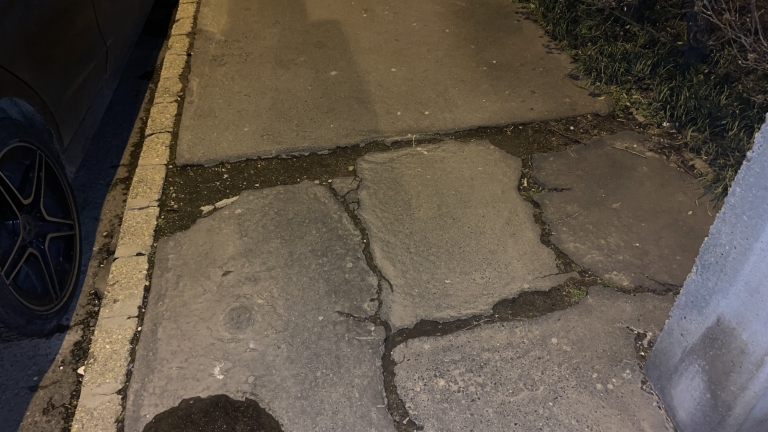 A járda nagy darabja hiányzik