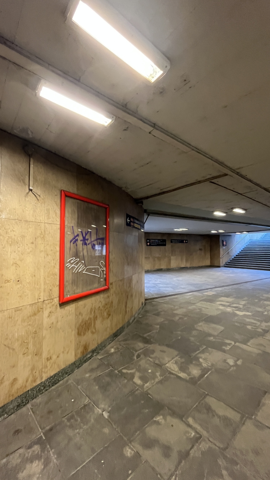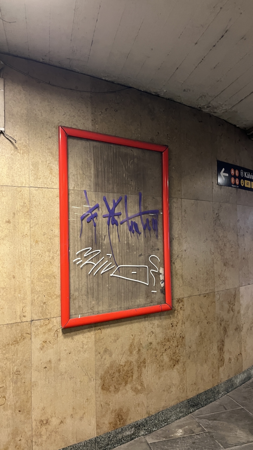A Kálvin téri aluljáróban a mellékelt, üres reklámtáblát graffitivel beszennyezték. Kérném a tábla takarítását, illetőleg annak leszerelését, mivel évek óta nincs használatban.