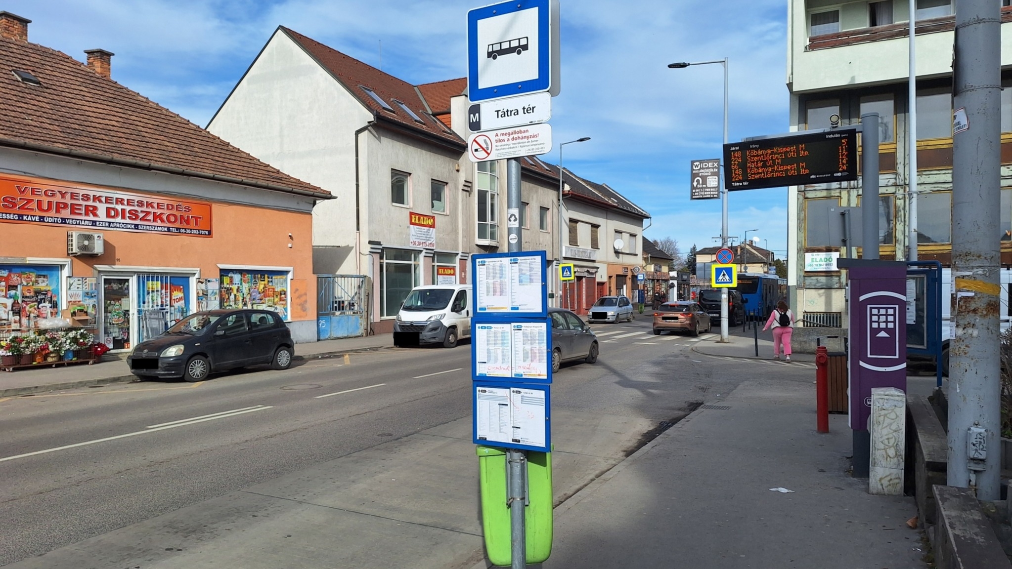 A 224-es busz Tátra tér megállójában össze vannak firkálva a menetrendet tartó táblák.