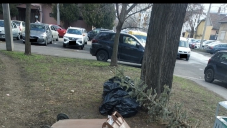 Lassan 2 hónapja nincs elszállítva a karácsonyról kidobott fenyőfák.