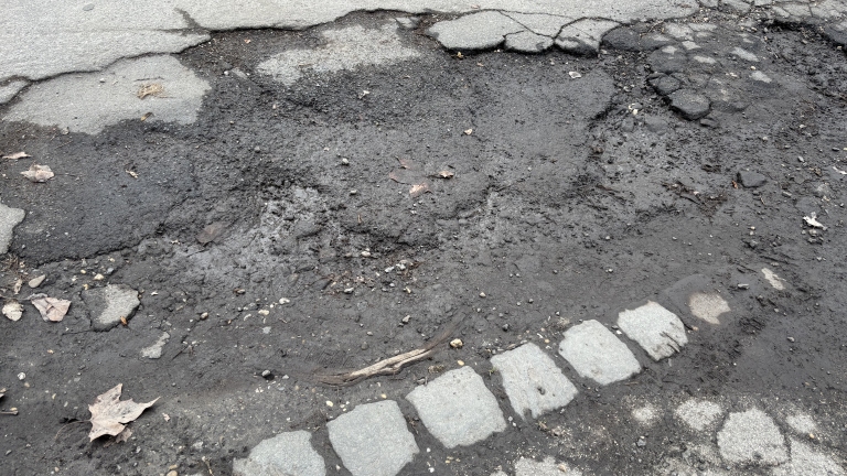 A XIX. kerület Zoltán utca 49. szám előtt az úton a képen látható kátyúk vannak.
