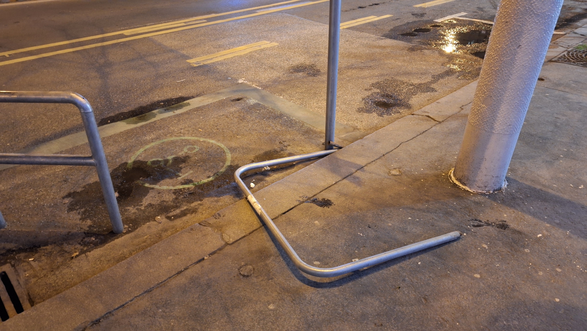 A Teréz körút 62. előtt kidöntöttek egy U korlátot.