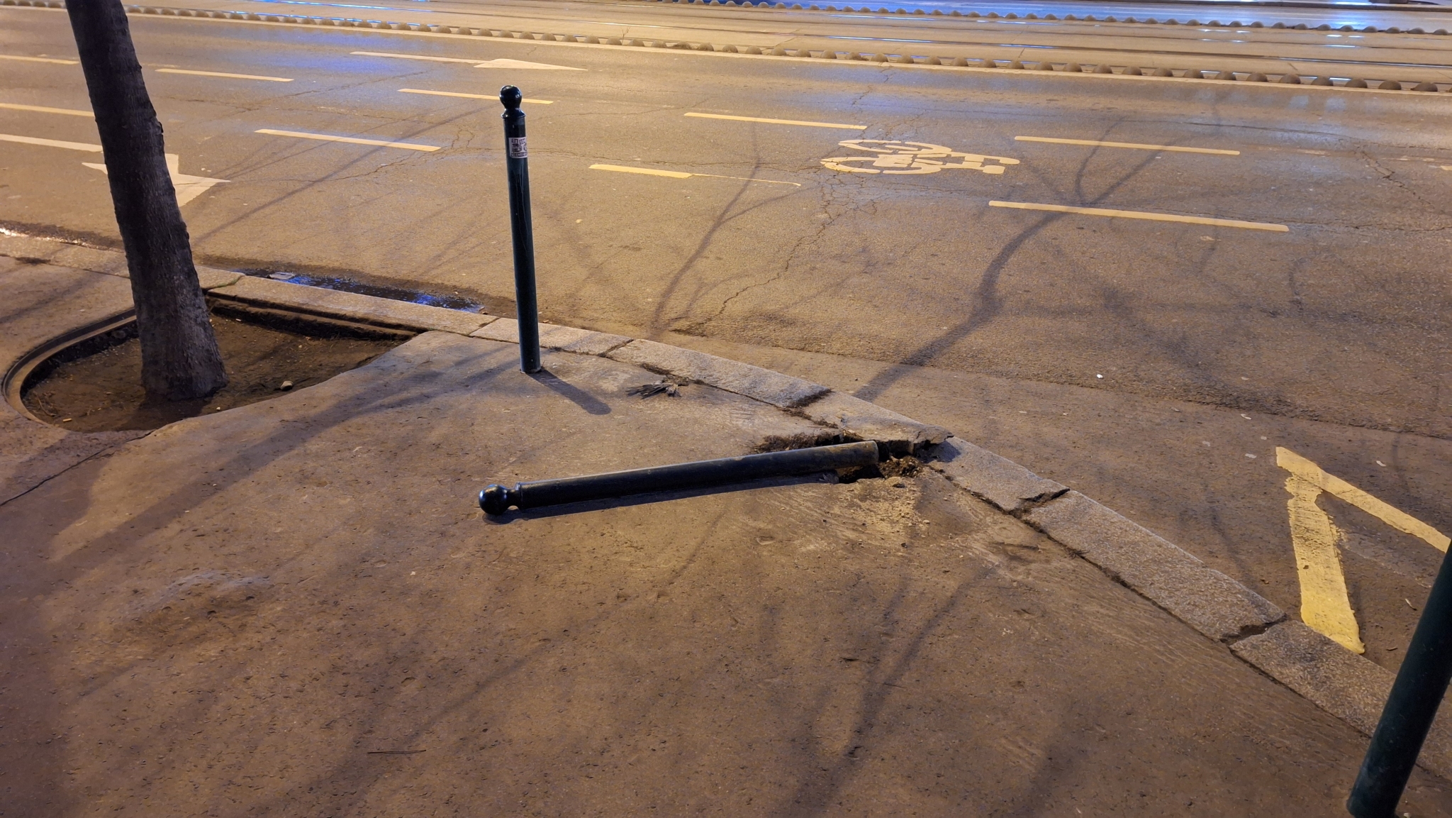 A Teréz körút 13. előtt kidöntöttek egy pollert.