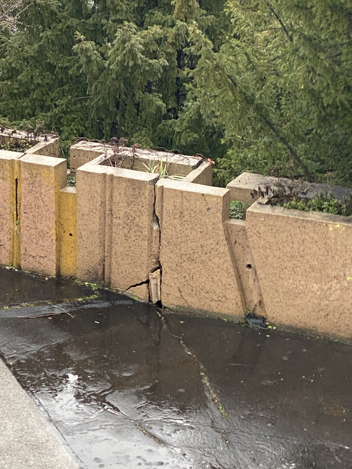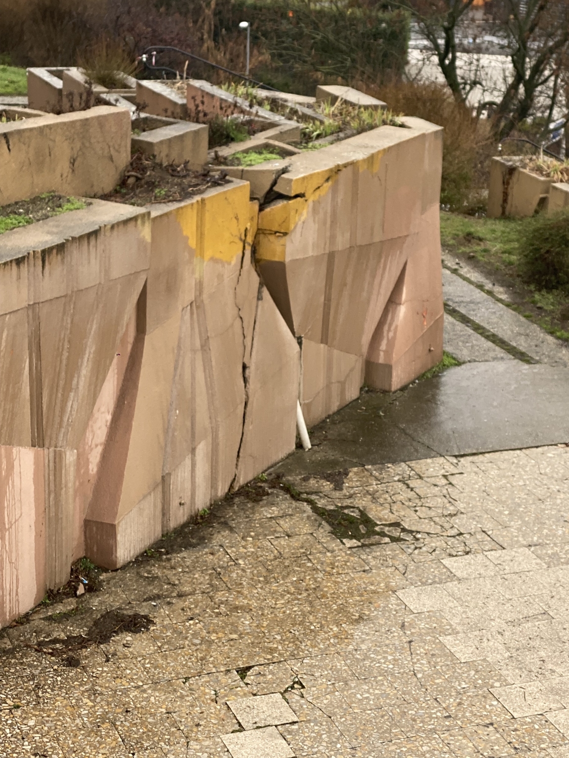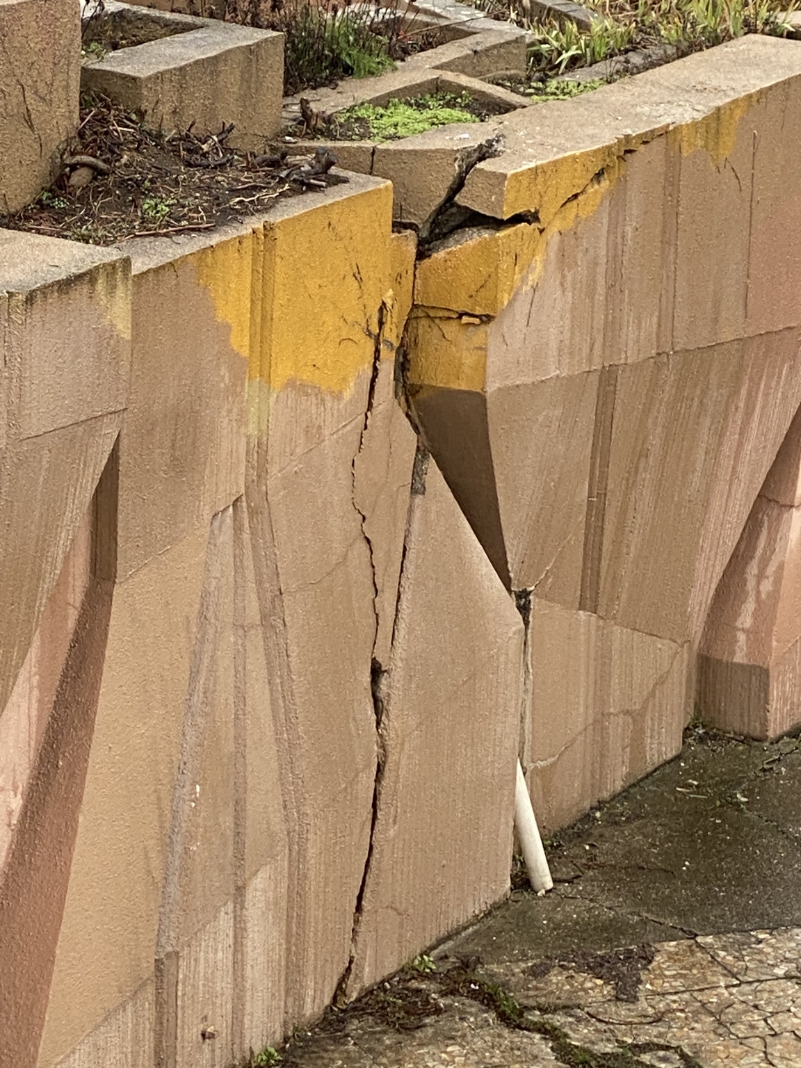 Óriási repedések jelentek meg sok helyen a Gellért-hegyi víztározó feletti betonfalakon.