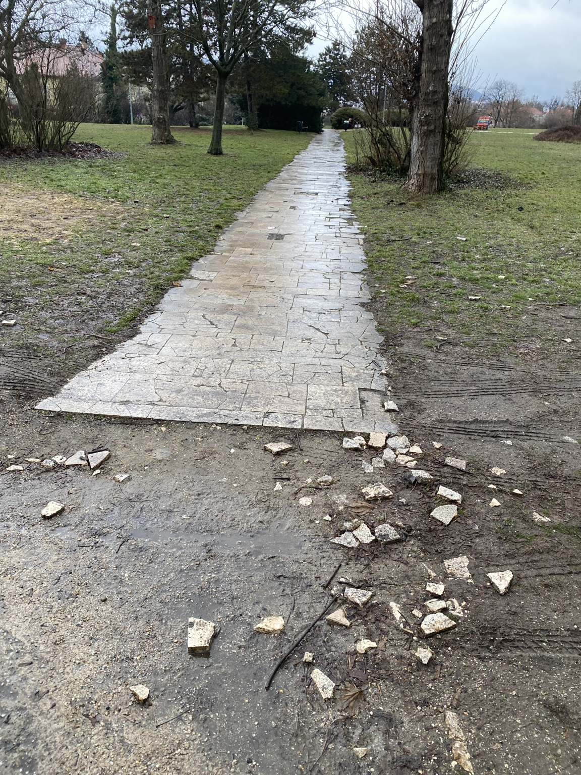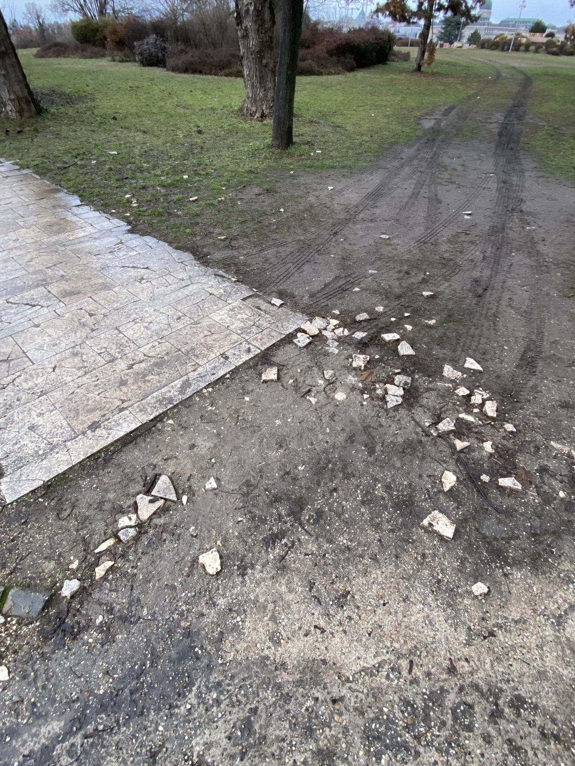 Több helyen, a Pest-Buda szobornál, az Orom utcai egyik gyalogút kijáratnál rommá tört a térkő. Mindenhol szeméttörmelék maradt utána.