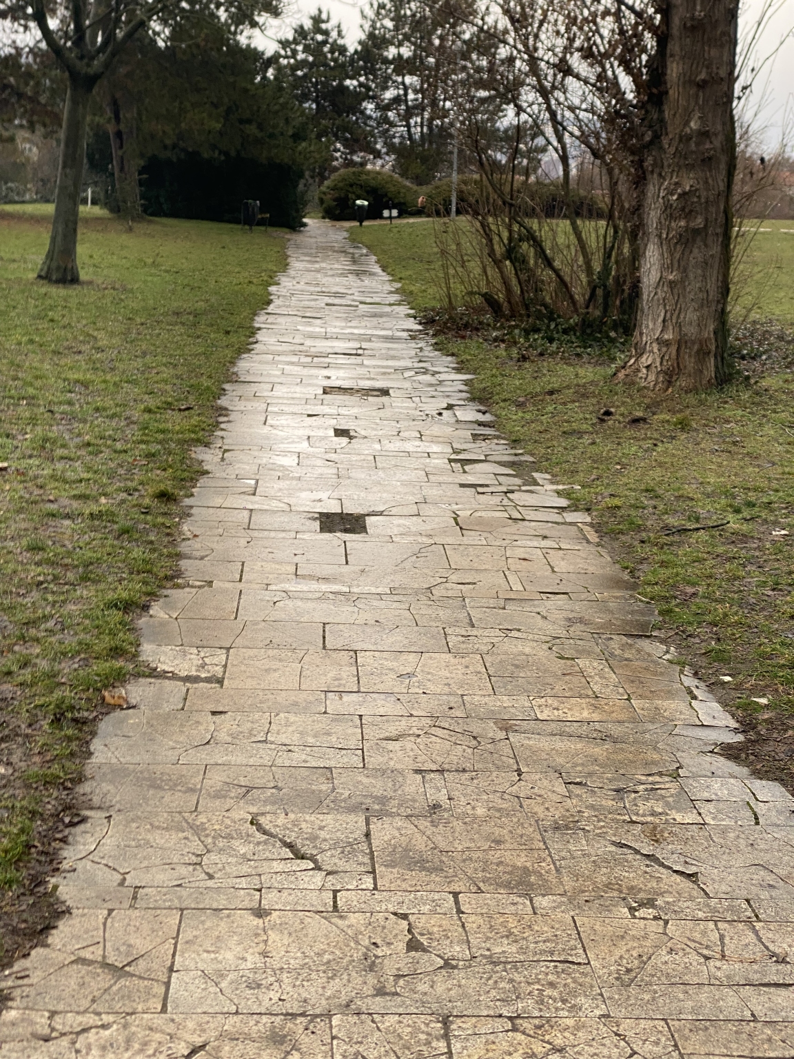 Széttőrt járóburkolat a víztározó környékén