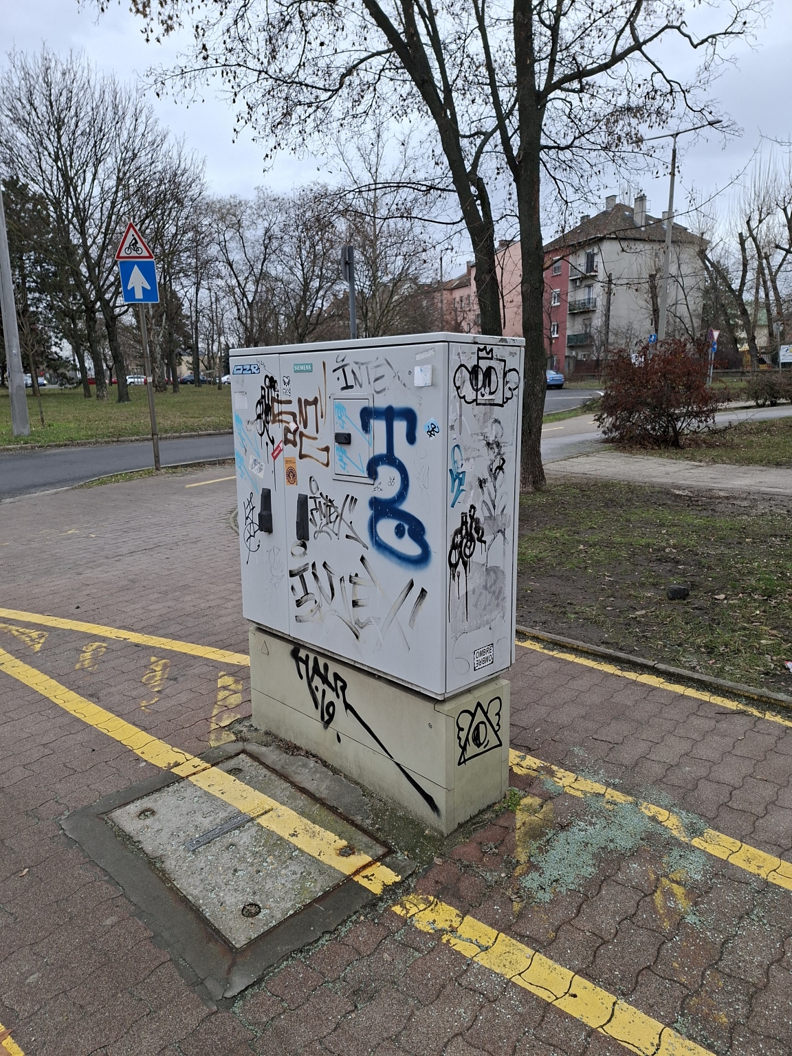 Zuglóban a Kassai tér melletti Róna utca bevezetőjénél lévő közmű graffitis.