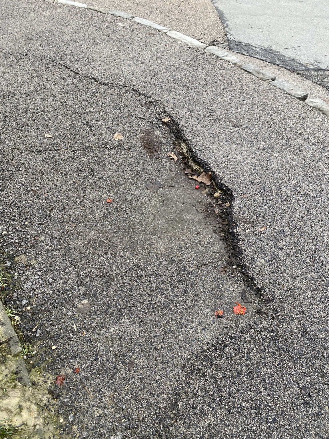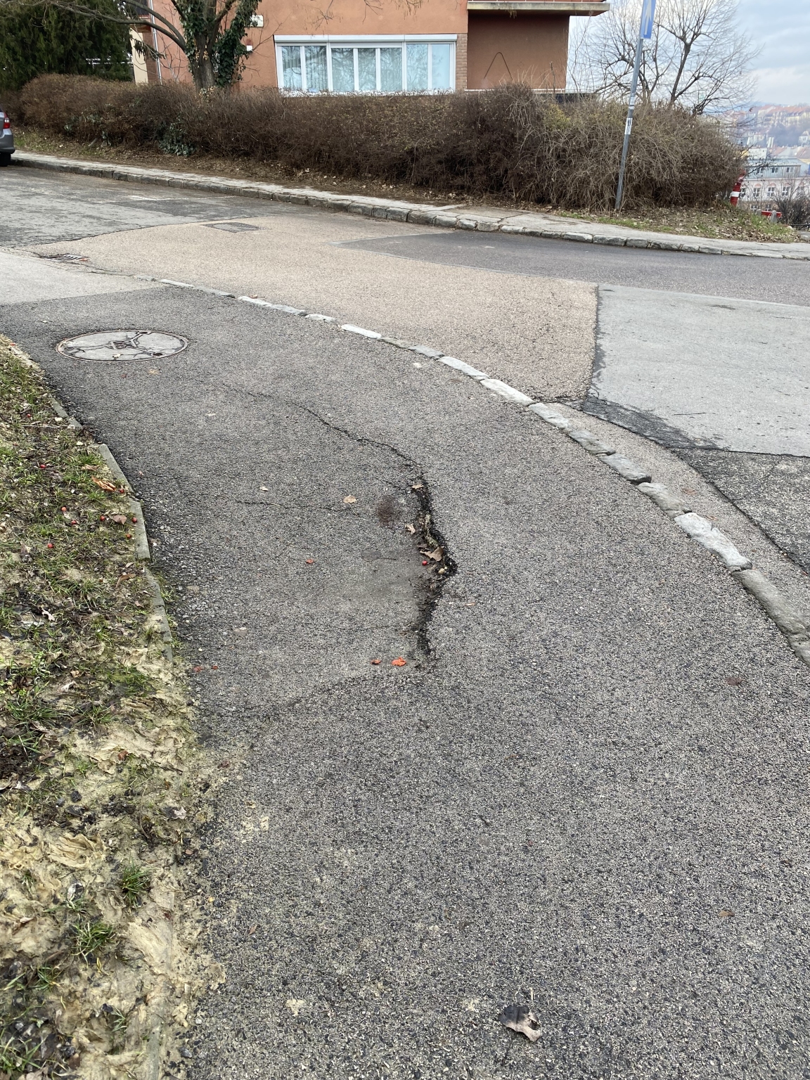 A Naphegy-Fény sarkán itt már egyszer kijavították a járdát. Nem sikerült valami tartosra, mert újra elkezdett egyre jobban beszakadni.