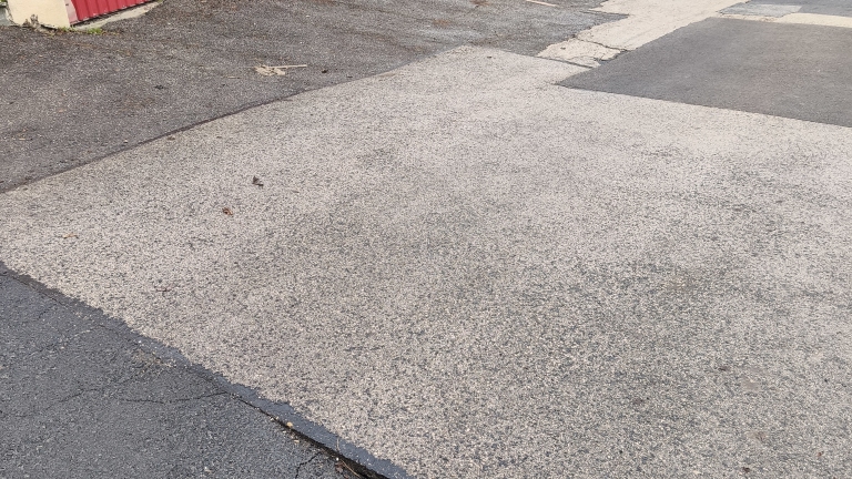 A repedéseken keresztül látszik, hogy az aszfalt alatt nincs semmi, kimosódott az alapozás.