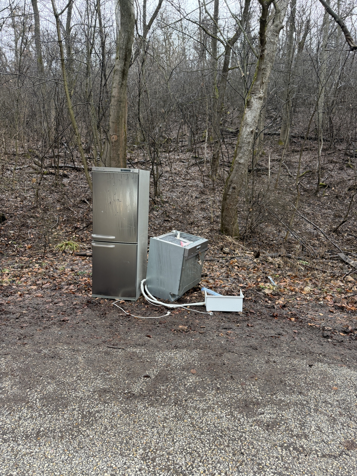 XII. Szilassy út kanyarjában, ahol az erdei sétáló út kezdődik valami nyomorult lerakta a kiszuperált hűtőszekrényeket.