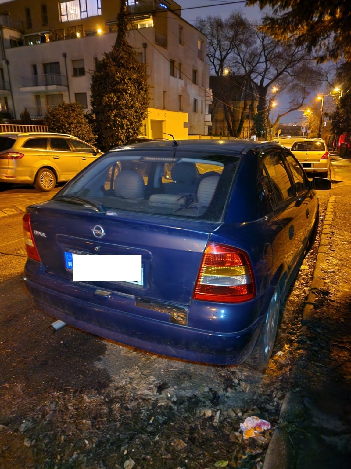 A Rahó utca 14. előtt várakozik egy 2005-ös kék Opel ASTRA-G-CC T98, a műszakija 2026.02.20-ig volt érvényes.