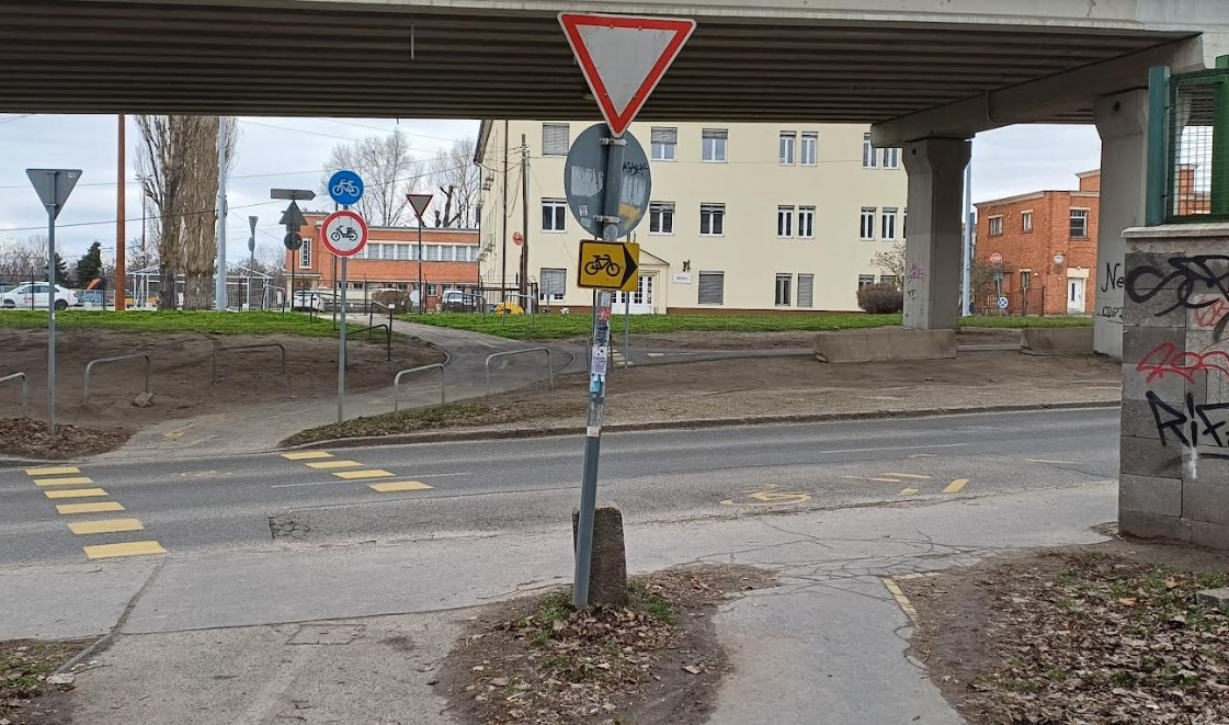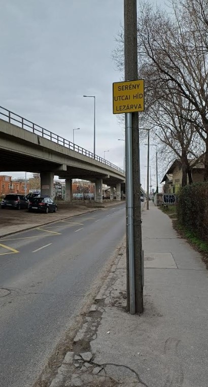 Több hónapja átadták a Serény utcai gyalogoshidat, a terelőtáblák viszont még midg kint vannak